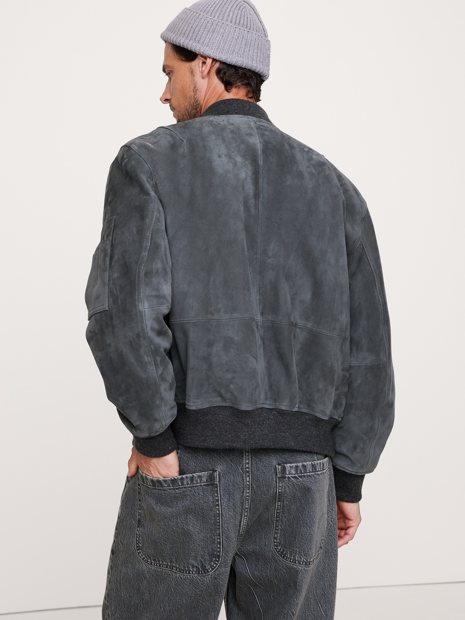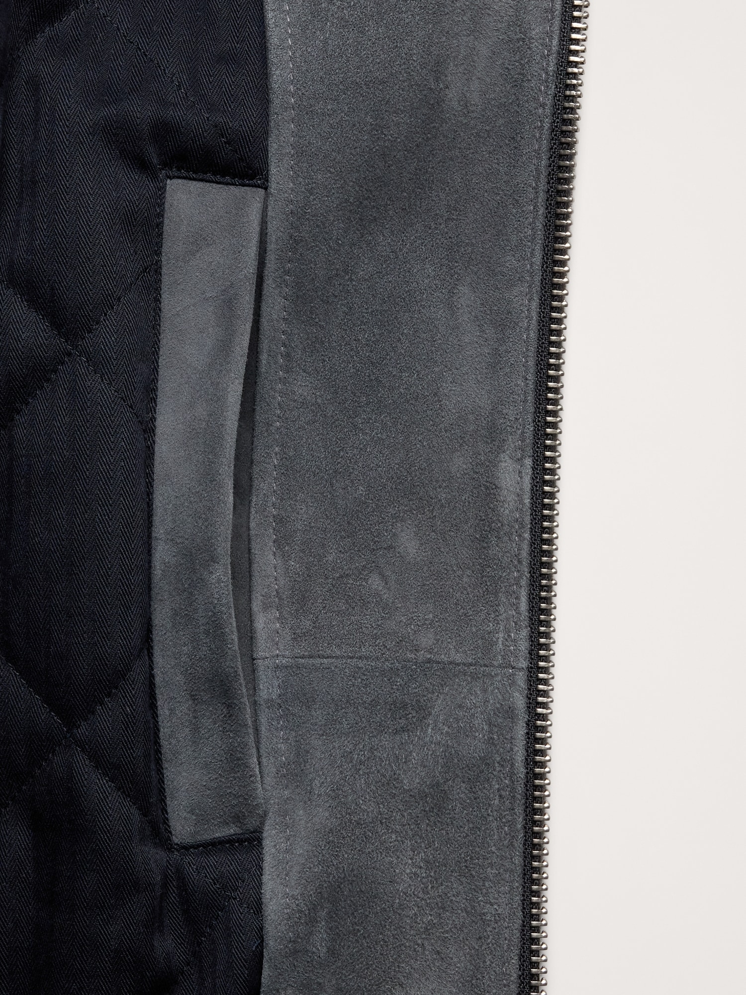 Suede Bomber Jacket with Quilted Lining