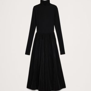 Taffeta Combo Turtleneck Maxi Dress