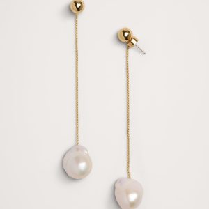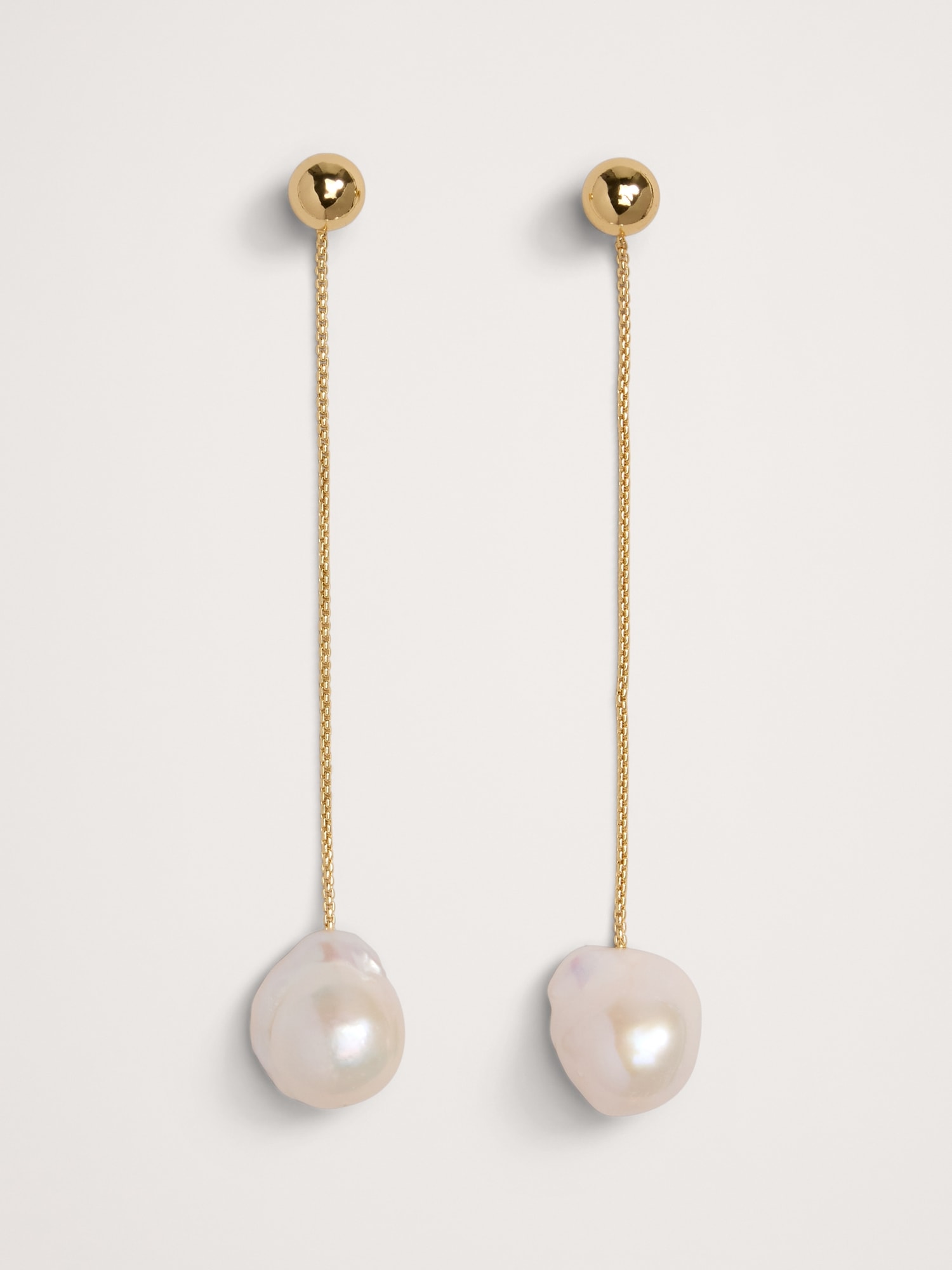 Luminous freshwater baroque pearls swing from delicate chains on these ball and post earrings.