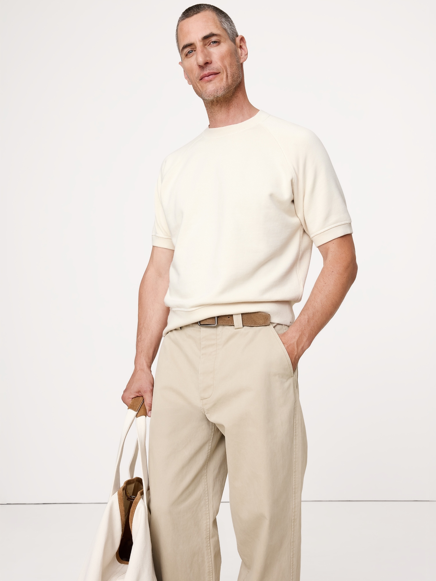 Not just terry. terry. A fabric we love for its all-weather weight. Here, a short-sleeve version of your fave sweatshirt, finished with a garment wash (for softness and lived-in color).