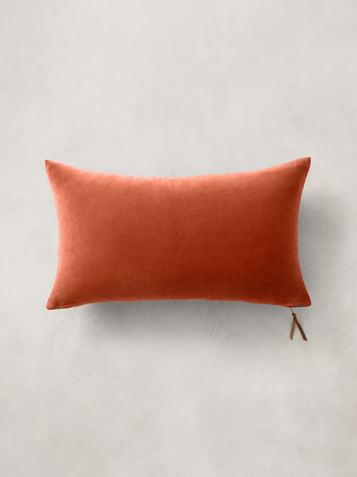 Everyday elegance, crafted of tonal cotton-velvet. Our elegant cotton-velvet pillow cover is expertly tailored for a refined finish and indulgent softness. Exposed brass zip closure with leather pull. OEKO-TEX® STANDARD 100 certification keeps you and your family safe from harmful substances (Certification number: 19.HIN.74318, Hohenstein HTTI). Pillow inserts are sold separately and are sized slightly larger than our pillow covers to create a fuller effect. Made in India. #541119