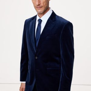 We selected a soft cotton velvet for this statement blazer, cutting it pile-up to enhance its luster and finished with an English-style roped shoulder, which adds a bit of structure and a more formal appearance.
