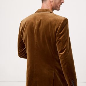 We selected a soft cotton velvet for this statement blazer, cutting it pile-up to enhance its luster and finished with an English-style roped shoulder, which adds a bit of structure and a more formal appearance.