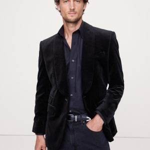 When the occasion calls for something truly special, reach for this velvet tuxedo jacket. We selected a beautiful cotton velvet, cutting the fabric pile-up to add to its luster. Finally, we added a roped shoulder and a shawl-lapel for a dressed up feel.