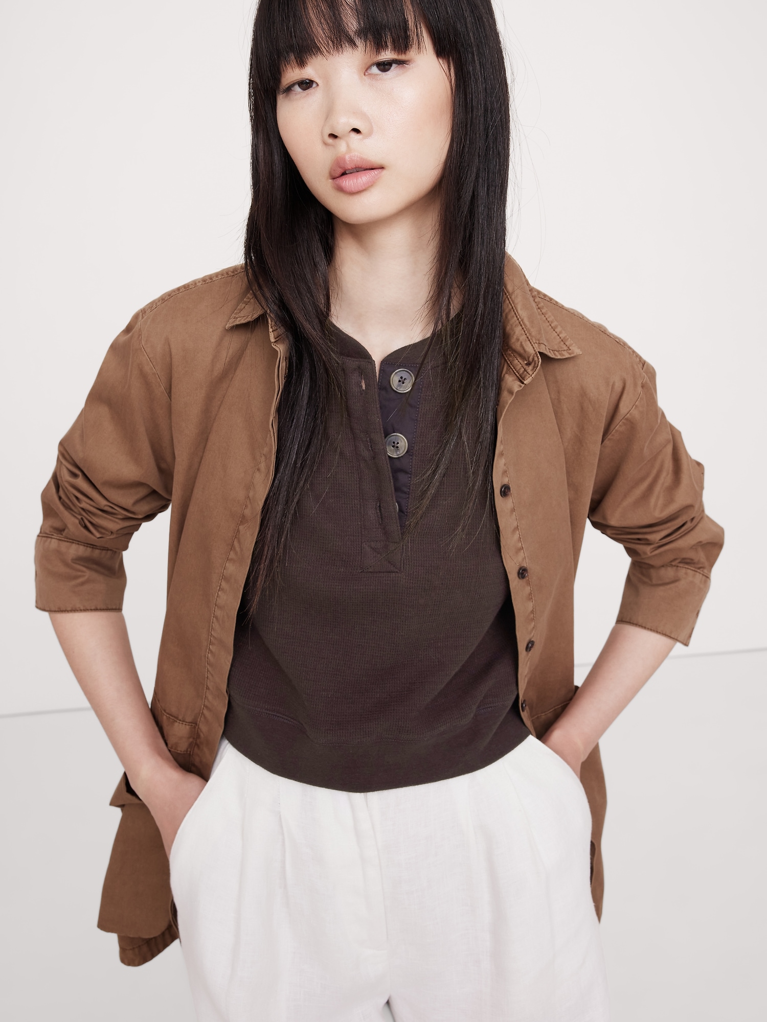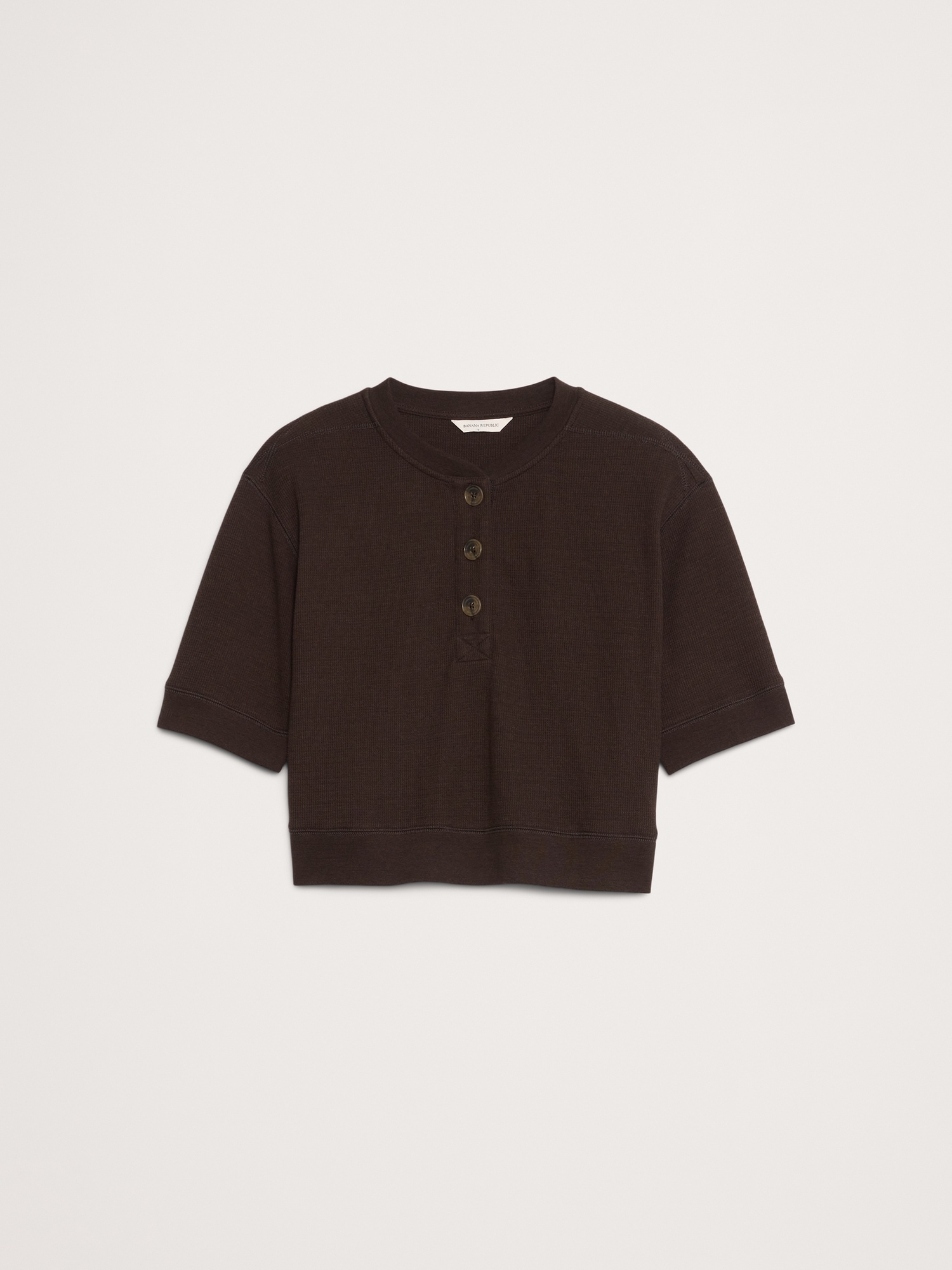Nothing says cold weather like waffle-knit jersey. Here, we crafted a classic henley in a super cropped length so you can style it all year.