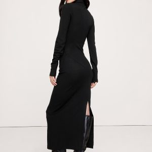 Just what we needed. This maxi dress is anything but basic thanks to ruching at the side, a paneled construction, and extra-long sleeves with zips at the cuff. Crafted in a warm wool-blend jersey so it’s t-shirt soft. Sheath Fit: Sits close to the body with a straight skirt. Crew neck. Zip detail at cuffs. Unlined. #817985
