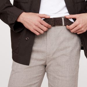 Belt loops and after-dinner split detail at back.
